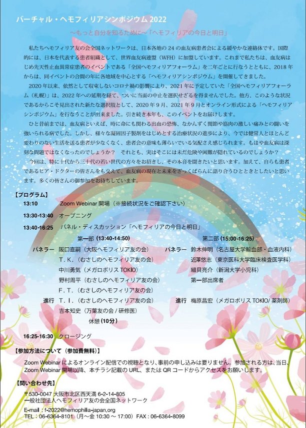 バーチャル・ヘモフィリアシンポジウム2022開催のお知らせ