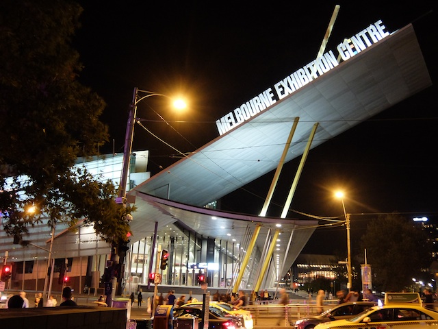 今回の大会は、メルボルンの市街地の南を流れるヤラ川のほとりにある、メルボルン・コンベンション・エキジビジョンセンターで開かれました。会場は広く、足の不自由な人には正直つらいほどです。そのため、会場の入口から展示会場・メインホール間でゴルフカートの運行サービスまでありました。運転していたのは全豪血友病財団の元会長さんだそうです。
